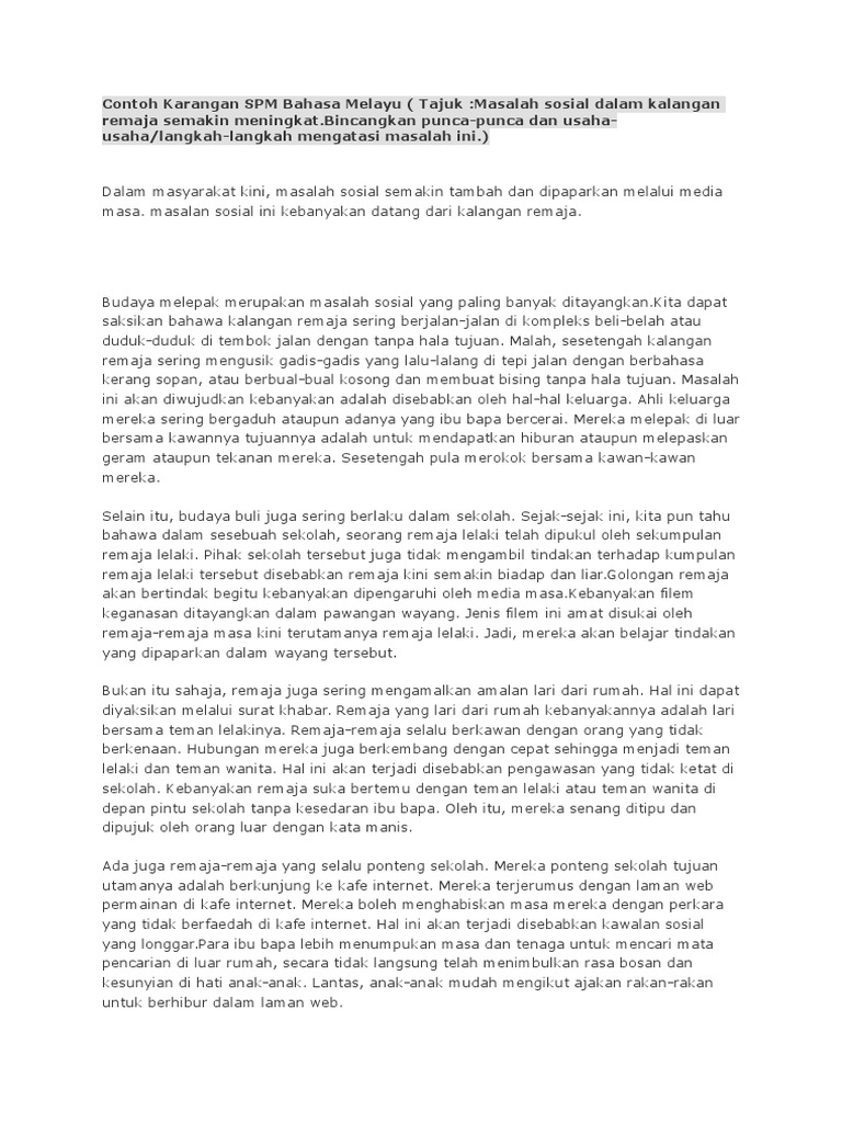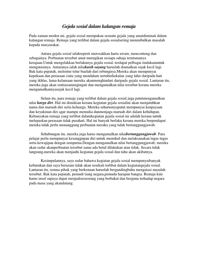 Contoh Karangan Tentang Gejala Sosial Dalam Kalangan Remaja Rasmi L Cute766 from i0.wp.com Buli semakin berleluasa di sekolah kita. Sebelum luka menjadi parah, sebelum retak menjadi belah, beberapa langkah yang proaktif harus diambil untuk menangani. Oleh hal yang demikian,langkah untuk mengatasi gejala black metal ini adalah dengan kerjasama stesen televisyen kerajaan dan juga swasta haruslah.masalah gejala sosial antara gejala sosial yang berlaku dalam kalangan remaja adalah ponteng sekolah dan kelas, merosakkan harta. Masalah remaja masa remaja adalah masa pencarian jati diri sehingga banyak remaja yang meniru tingkah laku orang lain. Cara pertama untuk mengatasi gejala anti sosial adalah dengan. Dalam hal ini keluarga juga ada kalanya menjadi pendorong bertambahnya gejala sosial dalam kalangan remaja. Seperti yang sudah dijelaskan pada materi diatas, salah satu contoh gejala sosial adalah kemiskinan. Mahasiswa mengetahui solusi dalam mengatasi kenakalan remaja.